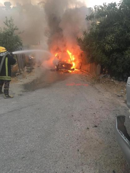احراق مركبة استخدمت في الاعتداء