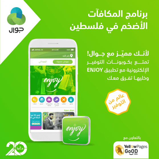 أعلنت شركة الاتصالات الخلوية الفلسطينية "جوال"عن إطلاق برنامج المكافآت الجديد "إنجوي"،ضمن توجهها العام في مكافأة وتقدير مشتركيها لاختيارهم الشبكة الأولى في فلسطين، وذلك من خلال إدخال تطويرات وتحديثات على برنامج المكافآت لديها ليحقق أكبر منفعة لمشتركيها ويقدم أفضل الخدمات والامتيازات لهم.