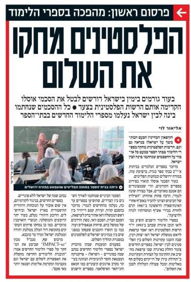 واضافت الصحيفة "على مدار السنوات الثلاث الماضية، أصلحت وزارة التربية والتعليم الفلسطينية جميع الكتب المدرسية من الصف الاول حتى التوجيهي وازالت جميع المحتويات المتعلقة بعملية السلام مع إسرائيل باستثناء جزء صغير من اتفاقية أوسلو على عكس ما كان مفصلا في الكتب المدرسية القديمة".