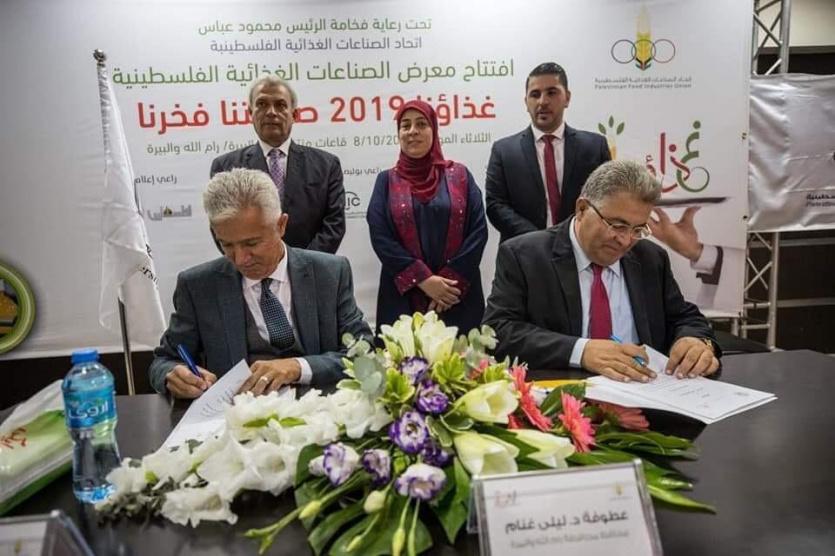وجاء توقيع الاتفاقية خلال افتتاح اتحاد الصناعات الغذائية الفلسطينية تحت رعاية الرئيس محمود عباس، معرض "غذاؤنا"، الخاص بالصناعات الغذائية الفلسطينية في البيرة، بحضور محافظ محافظة رام الله والبيرة د. ليلى غنام، ونائب رئيس الوزراء د. زياد أبو عمرو، وعدد من ممثلي الشركات المحلية المشاركة في المعرض الذي يأتي ضمن خطط الاتحاد المنسجمة مع الحكومة، الهادف الى ترويج ودعم المنتجات الفلسطينية، والانفكاك عن الجانب الاسرائيلي، خصوصا في قطاع المنتجات الغذائية، حيث أصبحت المنتجات الفلسطينية تضاهي المنتجات العالمية.