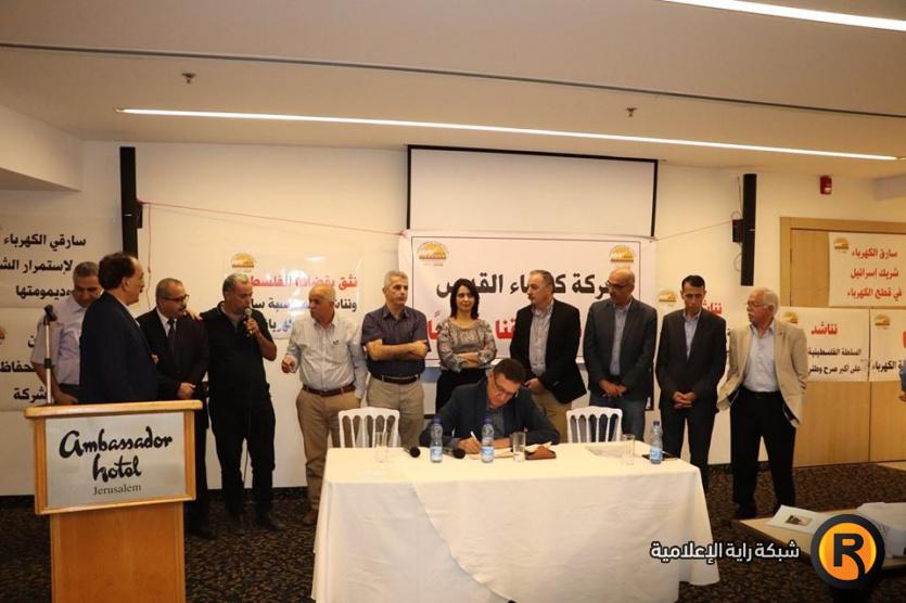نظمت نقابة العاملين والموظفين في شركة كهرباء محافظة القدس، اليوم السبت، ندوة بعنوان "شركة كهرباء القدس..ومؤسسات القدس إلى أين" في ظل أزمتها الحالية مع شركة الكهرباء الإسرائيلية، في فندق الأمبسادور بمدينة القدس، وذلك بحضورشخصيات اعتبارية ودينية ووطنية، ورئيس مجلس إدارة شركة كهرباء محافظة القدس ومديرها العام المهندس هشام العمري، والمدير الإداري للشركة م. هاني غوشة وأمين سر نقابة العاملين في كهرباء القدس هاني عبد السلام.