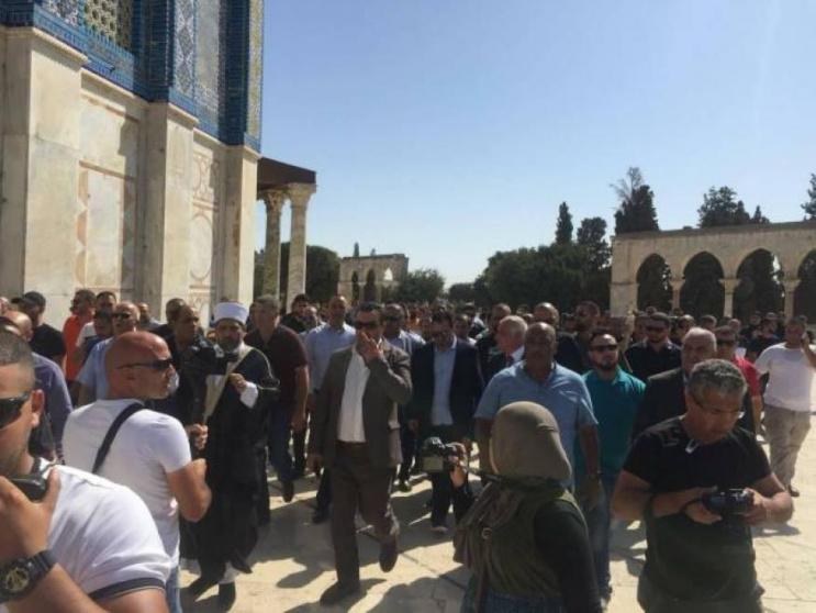وتجول الوفد في باحات المسجد الأقصى، واستمع من مديره عمر الكسواني ورئيس الأوقاف الإسلامية بالقدس الشيخ عزام الخطيب لشرح عن المعاناة والاعتداءات التي يتعرض لها المسجد الأقصى من قبل قوات الاحتلال الإسرائيلي.