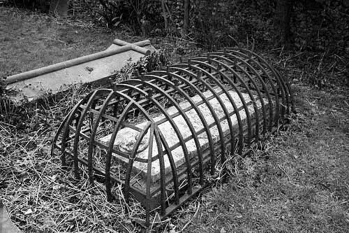 كان معظم الاهالي يحرصون على صب الاسمنت ووضع اقفاص الحديد فوق قبور موتاهم لحماية الجثث من النبش والسرقة.وكانت تستخدم هذه الطريقة أيضا كحل للإعتقاد السائد أنذاك بأن روح المتوفي قد تتحول إلى مصاص دماء ويخرج من قبره.