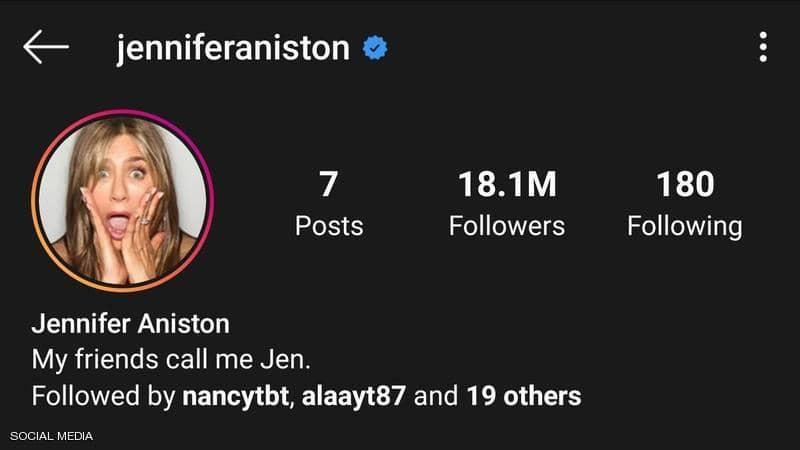 وخلال أكتوبر الماضي، دخلت أنستون، نجمة المسلسل الشهير في فترة التسعينيات "Friends" (الأصدقاء)، عالم إنستغرام رسميا بعد أن أنشأت حسابا لها وكانت أولى مشاركاتها صورة تجمعها بنجوم المسلسل، الذي لا يزال يلقى رواجا حتى الآن.