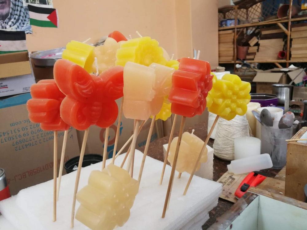 تقول ردينة "منذ عام 2003 بدأنا بورشة الشمع، دربنا الطلاب بالمركز، وحاليًا عندي تقريبا 8 طلاب، أعلمهم صناعة الشمع، وهم ينتجون ما نسبته 60% من خطوات تصنيعه، لكن بعض الطلبة عندهم مهارات عالية، وبعضهم قدراته بسيطة جدًا وادراكه ضعيف".