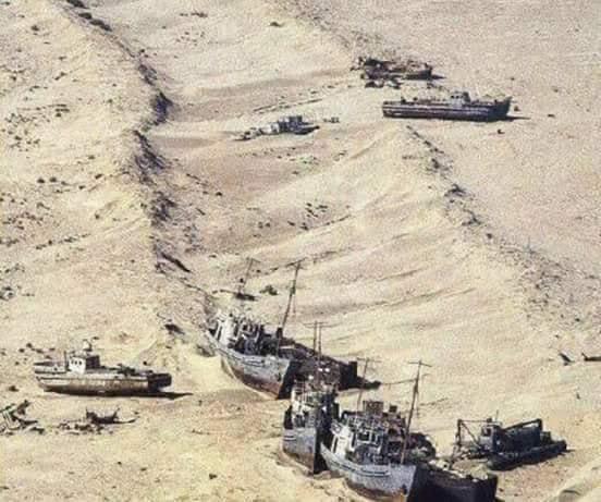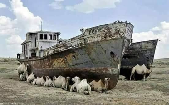 وتنتشر الآن بقايا صدئة لقوارب كانت يوما غارقة في قاع البحر، الذي أصبح اليوم صحراء.