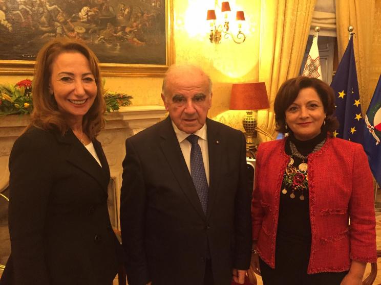 وفي اليوم الثاني قابلت السيدة حليلة، مع رئيسات الوفود المشاركة، الرئيس المالطي السيد جورج فيلا الذي رحب بالمشاركات وأكد على أهمية دور المرأة في سوق العمل، وأهمية وجودها في مواقع صنع القرار، وقد تبادل الرئيس مع السيدات المشاركات وجهات النظر حول الأوضاع العامة التي تمر بها دولهن والعلاقات المالطية الإقليمية والدولية.