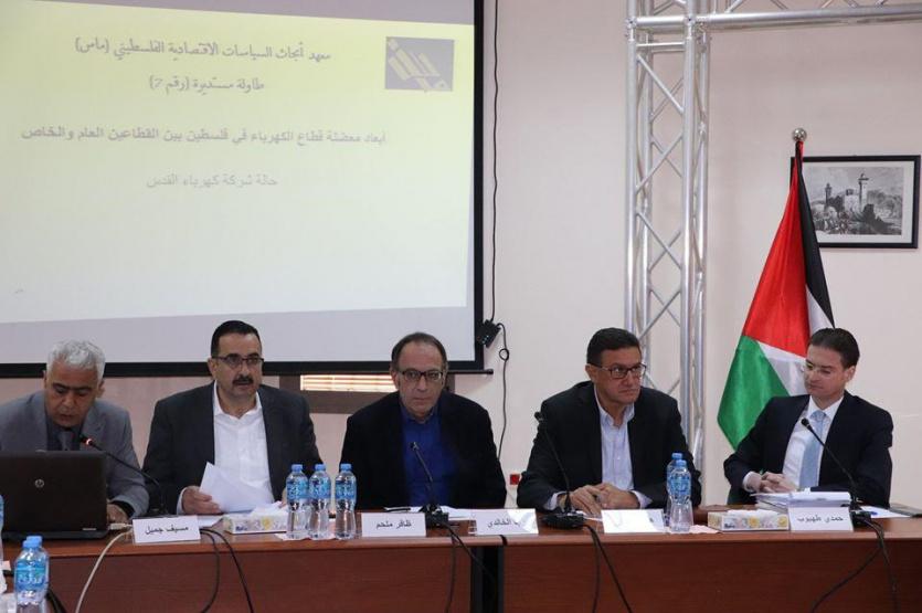عقد معهد أبحاث السياسات الاقتصادية الفلسطيني (ماس) في مقره برام الله لقاء طاولة مستديرة بعنوان "أبعاد معضلة قطاع الكهرباء في فلسطين بين القطاع العام والقطاع الخاص: حالة شركة كهرباء القدس"، وناقشت الجلسة المشاكل المالية لشركات القطاع الخاص العاملة في قطاع الكهرباء، وعلاقتها بالخزينة العامة، والمشاكل القانونية والتنظيمية، والتحديات الناجمة عن تعقيدات تصنيف المناطق الفلسطينية، وعدم التزام جزء من المستهلكين بالأنظمة والقوانين.