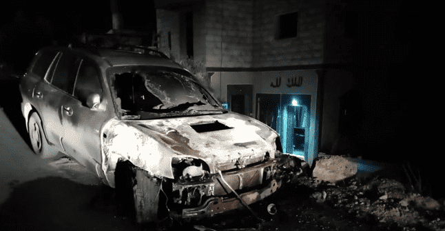 وأضاف: إن المستوطنين هاجموا منزل المواطن ثائر حنايشة من قرية بيت دجن شرق نابلس، واحرقوا مركبته وخطوا شعارات عنصرية.