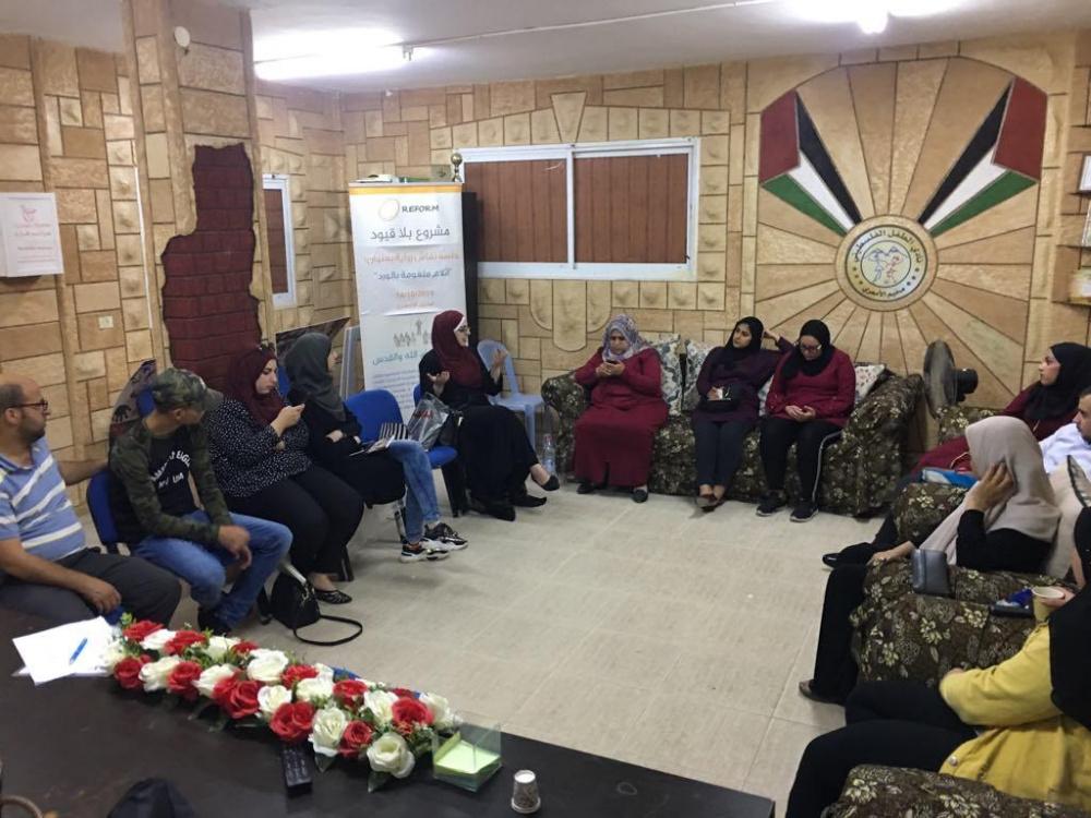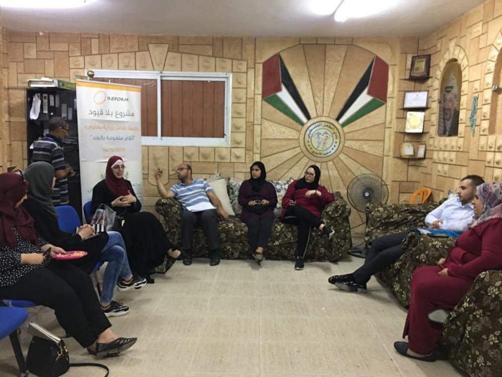ومن الجدير ذكره ان هذه الجلسة يأتي هذا اللقاء ضمن مشروع "بلا قيود"، والذي يهدف الى تعزيز المشاركة المجتمعية للفئات المهمشة، وتطوير سياسات عامة مستجيبة لاحتياجات الشباب سيما النساء، وتعزيز التعاون بين المجموعات الشبابية والمؤسسات القاعدية في المناطق المصنفة ج ومخيمات اللاجئين الفلسطينيين، وتطوير الأدلة والنظم الداخلية لتلك المؤسسات لترسيخ مبادئ الحكم الرشيد بهدف زيادة التماسك الاجتماعي والثقافي بين المكونات المجتمعة المختلفة، في اطار بناء هوية فلسطينية جامعة.