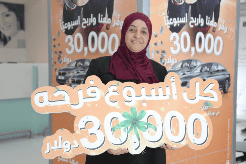 فازت كلّ من المواطنة منيرة عوض سليمان سكران، والمواطنة عروب عاطف لافي محمود، المدخرتان في حساب مشترك لدى بنك القاهرة عمان -فرع طولكرم، بجائزة الأسبوع الخامس والثلاثين ضمن حملة البنك على حسابات التوفير "كل أسبوع فرحة"، وقيمتها 30,000 دولار.