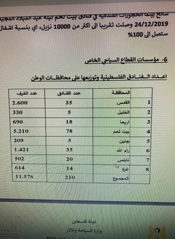 وهذه الزيادة اتضحت في ليلة الميلاد في بيت لحم إذ وصلت نسبة إشغال الفنادق إلى 100%.