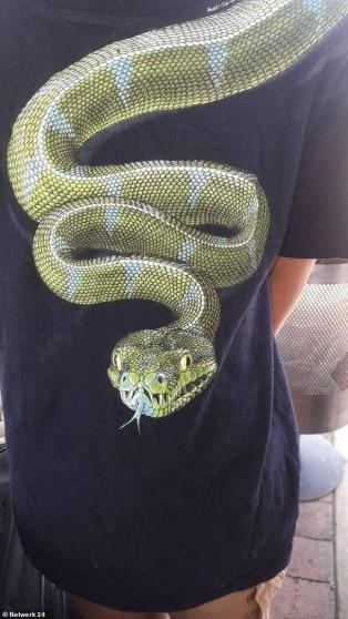 منع أمن مطار جوهانسبرغ في جنوب إفريقيا طفلا نيوزيلنديا من صعود الطائرة بسبب ارتدائه لقميص رسمت عليه صورة ثعبان ضخم.