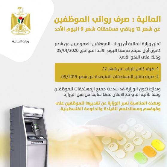 أعلنت وزارة المالية عن صرف رواتب الموظفين عن شهر 12 وباقي مستحقات شهر 9 اليوم الأحد.