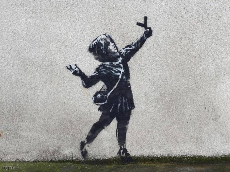 اهدى فنان الشوارع البريطاني بانكسي مدينته بريستول في غرب إنجلترا جدارية جديدة بمناسبة عيد الحب تصور فتاة صغيرة بيدها مقلاع تطلق من خلاله زهورا حمراء.