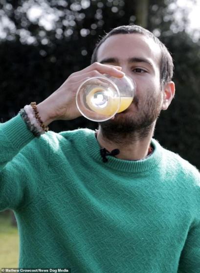 يشرب رجل يبلغ من العمر 32 عامًا كأساً من البول كل يوم لمدة أسبوعين ويفرك القليل منه على وجهه حيث يدعي انه مرطب جيد للبشرة، وأنه شفي من اكتئابه وجعله يبدو أصغر سنًا.