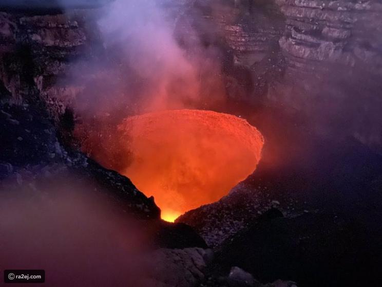 مغامر يستعد للسير على الحبل فوق بركان نشط