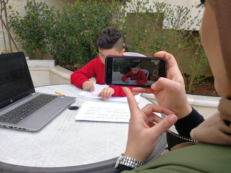 المعلمة فداء تنتهج أساليب متعددة في تعليم طلبتها، فقد اتخذت من شقيقها زين الطالب بالصف الثالث الأساسي، مساعدًا لها، عبر تدريسه الدرس المطلوب، ثم تصويره ونشره على المجموعة الخاصة حتى تعم الفائدة على جميع طلبتها من ذات المرحلة الدراسية.
