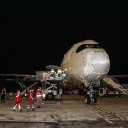 وأخذوا معهم أكثر من 700 قطعة من المعدات والسلع بما فيها أجهزة تهوية وشاشات وأجهزة تنظيم ضربات القلب. وقال أحد أعضاء الفريق وهو يرتدي الكمامة لوسائل الإعلام عقب نزوله من الطائرة "أحضرنا معنا 30 مجموعة من أجهزة وحدات العناية المركزة".