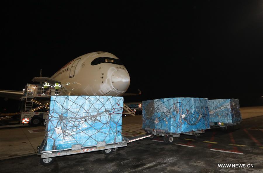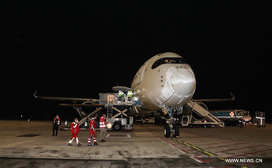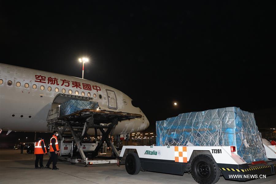 فقد هبطت طائرة إيرباص أيه- 350 عريضة البدن، تابعة لخطوط "تشاينا إيسترن" الجوية الصينية، في حوالي الساعة 22:30 بالتوقيت المحلي في منطقة البضائع بالمطار، وكان في استقبالها حشد من الخبراء المحليين من الصليب الأحمر الإيطالي ومسؤولون من وزارة الخارجية الإيطالية ومندوبون من السفارة الصينية لدى إيطاليا.