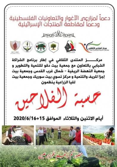 نشير الى ان حسبة الفلاحين هي تنفيذ مشترك بين المنتدى الثقافي في اطار برنامج الشراكة الشبابي و عدد من الجمعيات و المؤسسات التنموية في منطقة شمال غرب القدس.