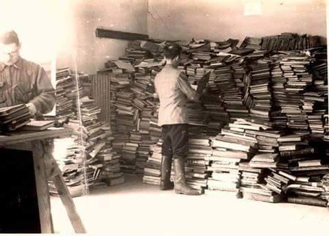 التقطت الصورة في جويليه 1949 من مدينه القدس، وهي لمستودع خاص بالجامعة العبرية وضعت به كافة الكتب والمخطوطات العربية التي تم نهبها من البيوت المهجرة بعد طرد أصحابها اثناء النكبة الفلسطينية عام 1948.