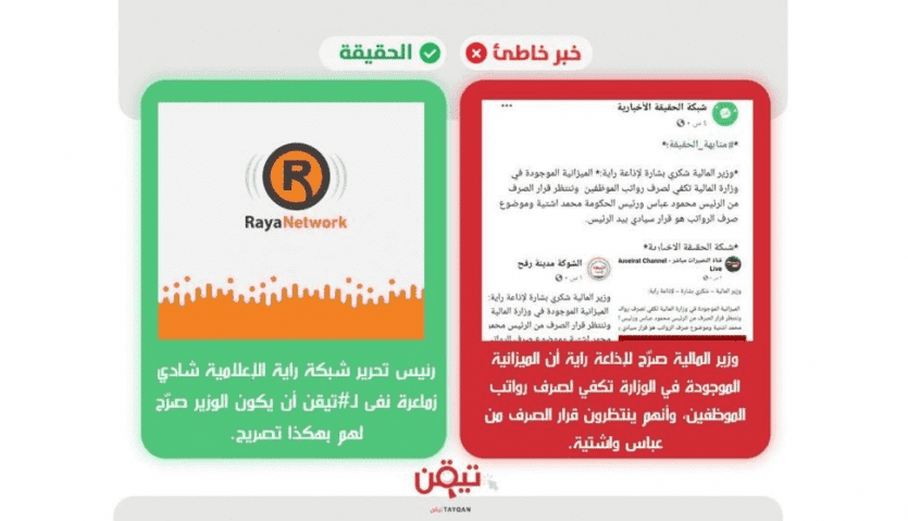 وتستنكر شبكة راية الاعلامية قيام بعض الصفحات والمواقع المجهولة بشكل متعمد تلفيق اخبار على لسان مسؤولين ونسبها للشبكة.