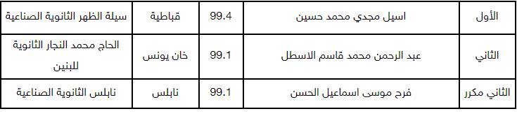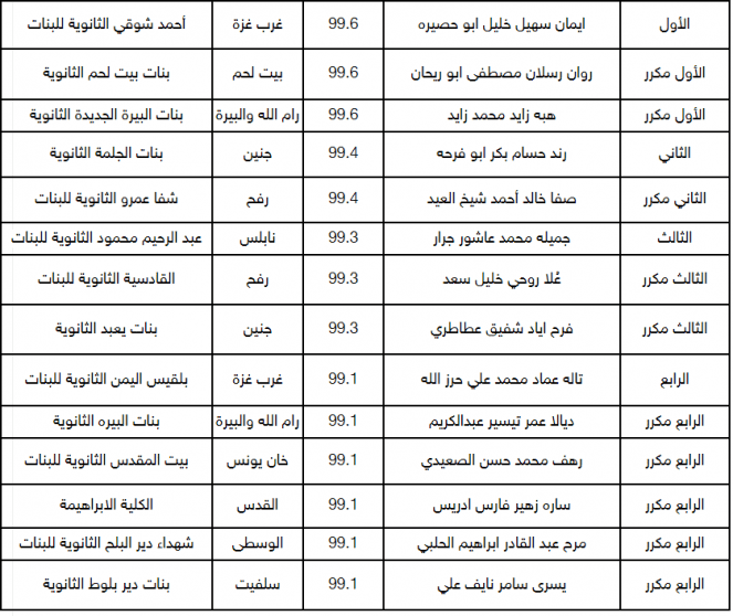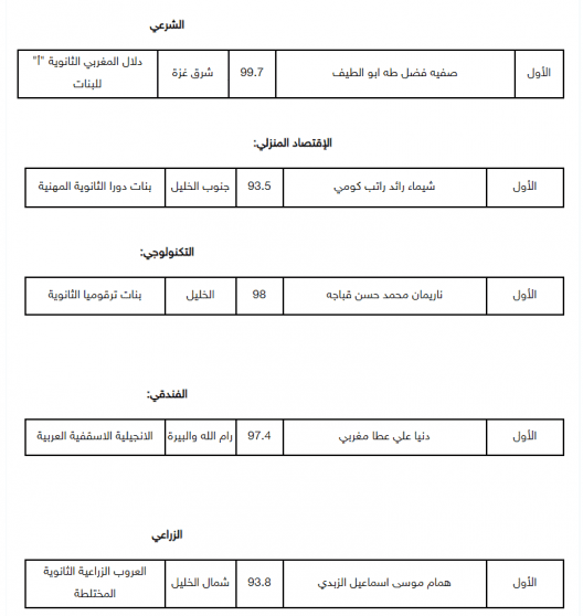 أما العشرة الأوائل للفرعين الأدبي والعلمي فكانت على النحو الآتي: