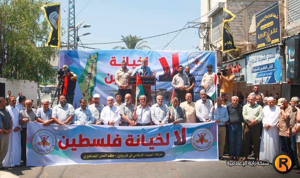 وفي قطاع غزة، شارك المئات من أبناء شعبنا في تظاهرة منددة في ميدان "فلسطين" وسط مدينة غزة، مرددين الهتافات الغاضبة والرافضة لاتفاق التطبيع الإماراتي.