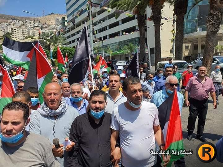 وفي مدينة نابلس، ندد المئات من أبناء شعبنا بالاتفاق، خلال تظاهرة نظمتها فصائل منظمة التحرير، خرجت عقب صلاة الجمعة في ميدان "الشهداء" وسط المدينة.
