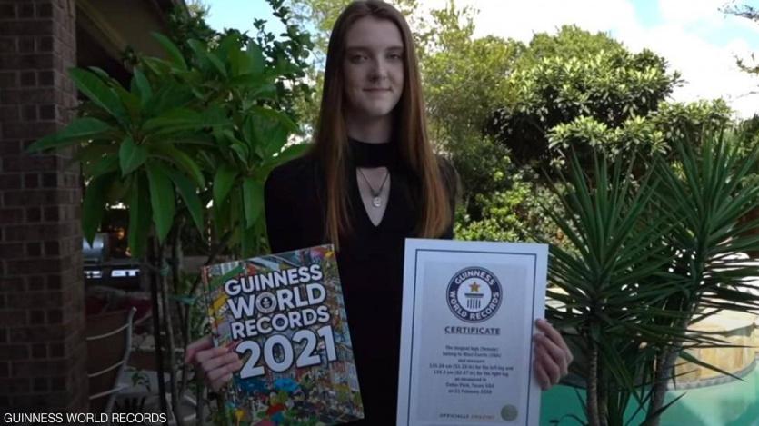 بالصور.. مراهقة تحطم رقمين قياسيين لأطول ساقين في العالم
