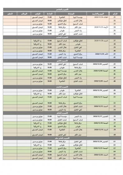 أعلن الاتحاد الفلسطيني لكرة القدم، اليوم الأحد، عن جدول مباريات مرحلة الذهاب من دوري المحترفين لموسم 2020-2021، وذلك على النحو الآتي: