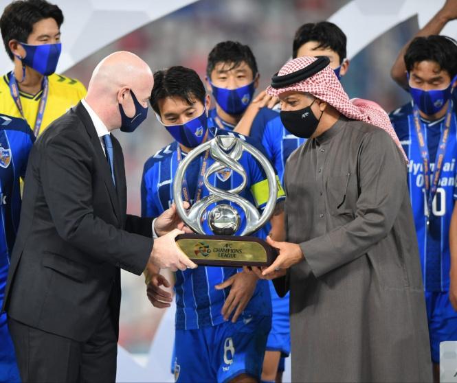 وكان الشيخ سلمان بن ابراهيم آل خليفة توج فريق أولسان هيونداي بطلاً لمسابقة دوري أبطال آسيا بعد فوزه على فريق بيريسبوليس الإيراني بهدفين مقابل هدف واحد في المباراة النهائية للمسابقة التي أقيمت على إستاد الجنوب في العاصمة القطرية الدوحة بحضور السيد جياني انفانتينو رئيس الإتحاد الدولي لكرة القدم.