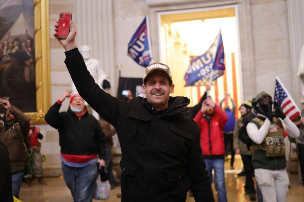 ووصل أنصار ترامب إلى الشرفة القريبة من المنصة التي ستشهد تنصيب الرئيس بايدن في الكونغرس.