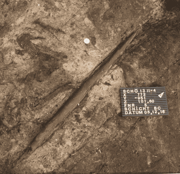 ورُصّع مقبض السيف بنقوش دائرية دقيقة وهلال. وقام علماء الآثار من متحف سيليزيا القريب بفحص القطع الأثرية وربطها بالعصر البرونزي، منذ نحو 3300 عام. ولم يكن من الواضح سبب خروج السيف في وسط الغابة، على الرغم من أن الأمطار الأخيرة ربما جرفت ما يكفي من التربة لجعلها مرئية لأول مرة منذ آلاف السنين. ويخطط علماء الآثار لدراسة المنطقة المحيطة بشكل أكبر.