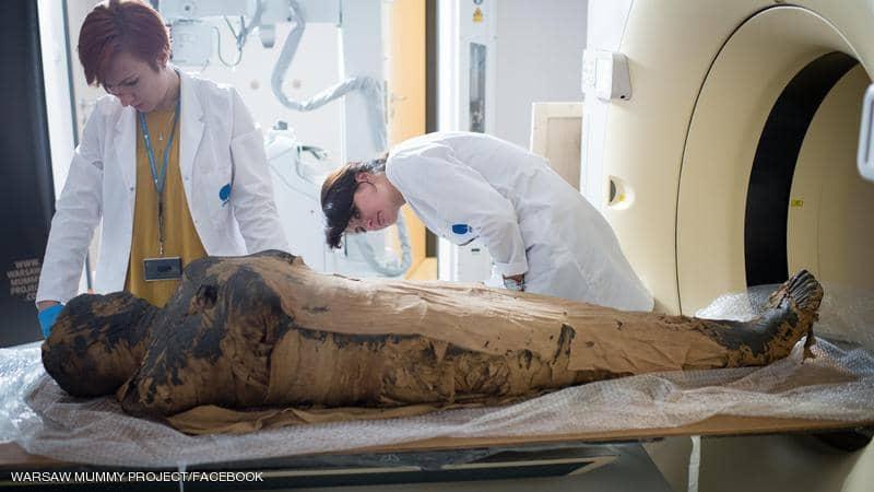 كشف فحص أثري لمومياء مصرية قديمة في مجموعة المتحف الوطني في العاصمة البولندية وارسو، عن أول حالة معروفة في لمومياء حامل.