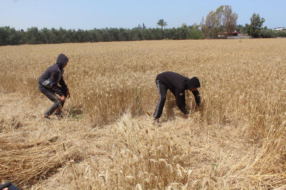بالصور.. الزراعة في غزة تفتتح موسم حصاد القمح