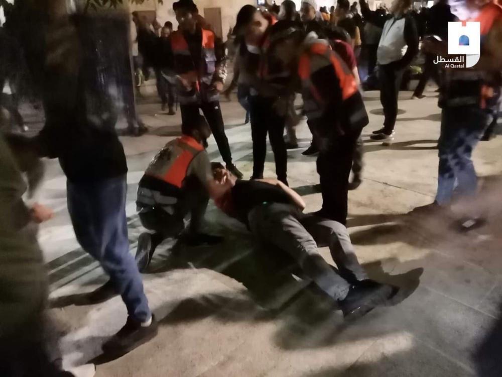 وبعد ذلك اعتدى عناصر شرطة الاحتلال على المصلّين، ما تسبب بإصابة بعضهم. وأفادت جمعيّة الهلال الأحمر في بيان، بوقوع "13 إصابة معظمها في العين والرأس خلال مواجهات من قوات الاحتلال في المسجد الأقصى".