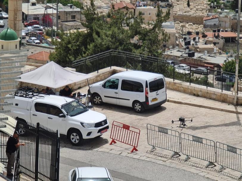 ووضعت قوات الاحتلال الحواجز الحديدية في حي الشيخ جراح لتأمين اقتحام المستوطنين وأعضاء من "الكنيست"، في حين ساد توتر في الحي ترقبًا للاقتحام الإسرائيلي الذي سيقوم به المستوطنون وأعضاء من "الكنيست".
