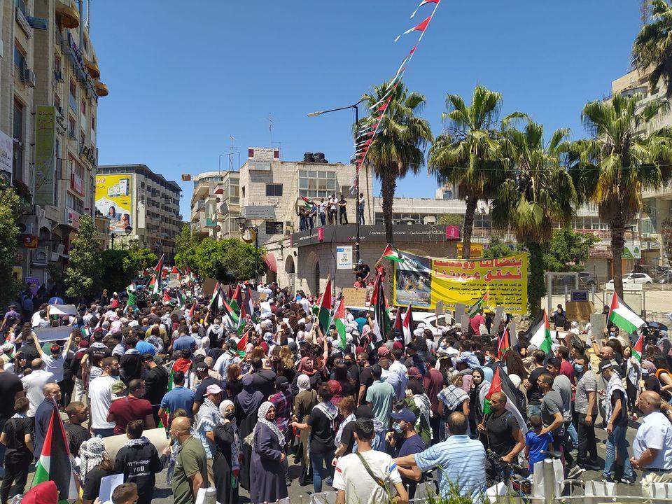 وفي بيت لحم أصيب عشرات المواطنين بالاختناق، جراء قمع قوات الاحتلال الإسرائيلي، مسيرة جماهيرية مركزية انطلقت من منطقة باب الزقاق وصولا الى المدخل الشمالي لمدينة بيت لحم، تنديدا بالعدوان على شعبنا، حيث هاجمها جنود الاحتلال بقنابل الغاز المسيل للدموع والصوت، ما أدى إلى وقوع اصابات.
