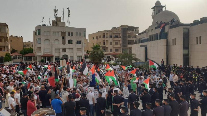 وخرجت مسيرات ونظمت وقفات تضامنية مع الشعب الفلسطيني في إربد والسلط ومعان والكرك ومادبا وغيرها من المناطق.
