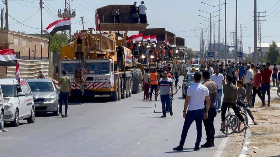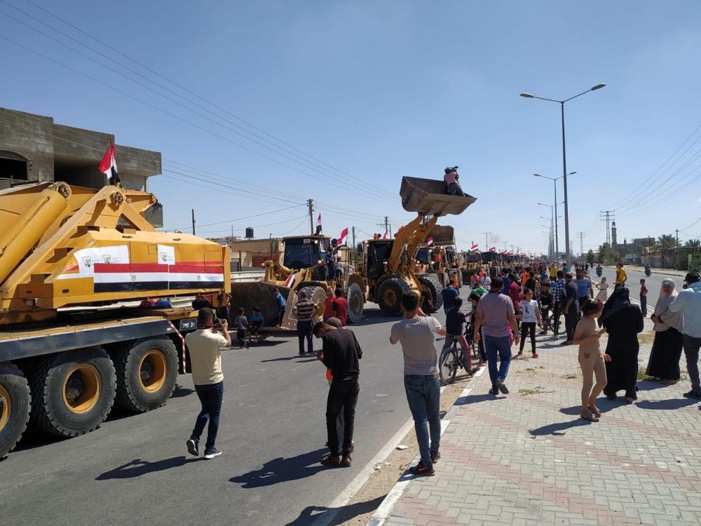 شاهد: معدات وأطقم هندسية مصرية تدخل غزة لإزالة الأنقاض