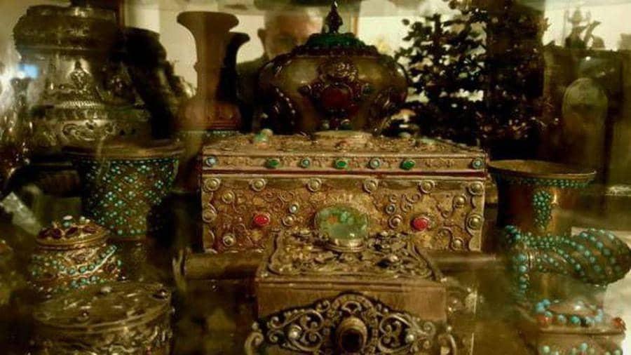 وتحتوي الشقة على لوحات نادرة لرسامين عالميين وتحفا نادرة وصناديق مطعمة بمجوهرات مختلفة الأحجام والأشكال والألوان، وأوانٍ وأباريق بأشكال وأحجام مختلفة.