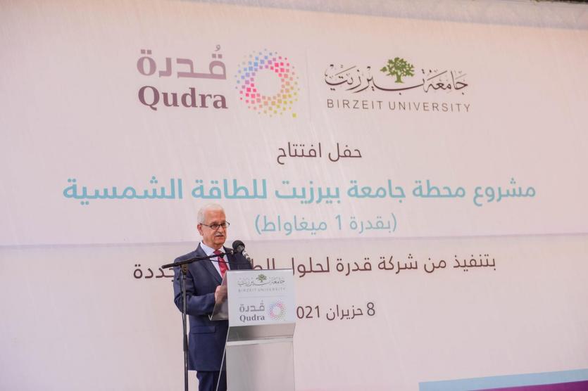 وأضاف: "يأتي افتتاح هذه المحطة اليوم، بالتعاون مع شركة قُدرة ليشكل إضافة مهمة في مسعى جامعة بيرزيت لتعزيز ثقافة التوجه إلى الطاقة النظيفة، لا سيما في ظل انحسار الاعتماد الكلي على مصادر الطاقة التقليدية، وليشكل نقلة نوعية في اعتماد الجامعة على الطاقة الشمسية، بحكم كون هذا المشروع قادر على توليد طاقة كهربائية بقدرة 1 ميجا واط.