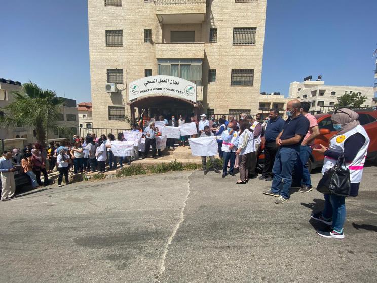 البيرة: وقفة إسناد واستنكار أمام مؤسسة لجان العمل الصحي