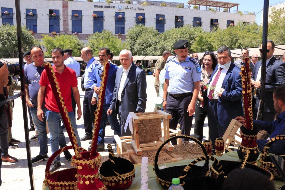 ضمن فعاليات بيت لحم عاصمة الثقافة العربية 2020 وأسبوع الاقتصاد الوطني، نظمت بلدية بيت لحم، سوق المزارعين الوطني في ساحة المهد اليوم السبت، بحضور عطوفة محافظ بيت لحم اللواء كامل حميد، ونائب مدير شرطة محافظة بيت لحم العقيد ابراهيم العبسي.