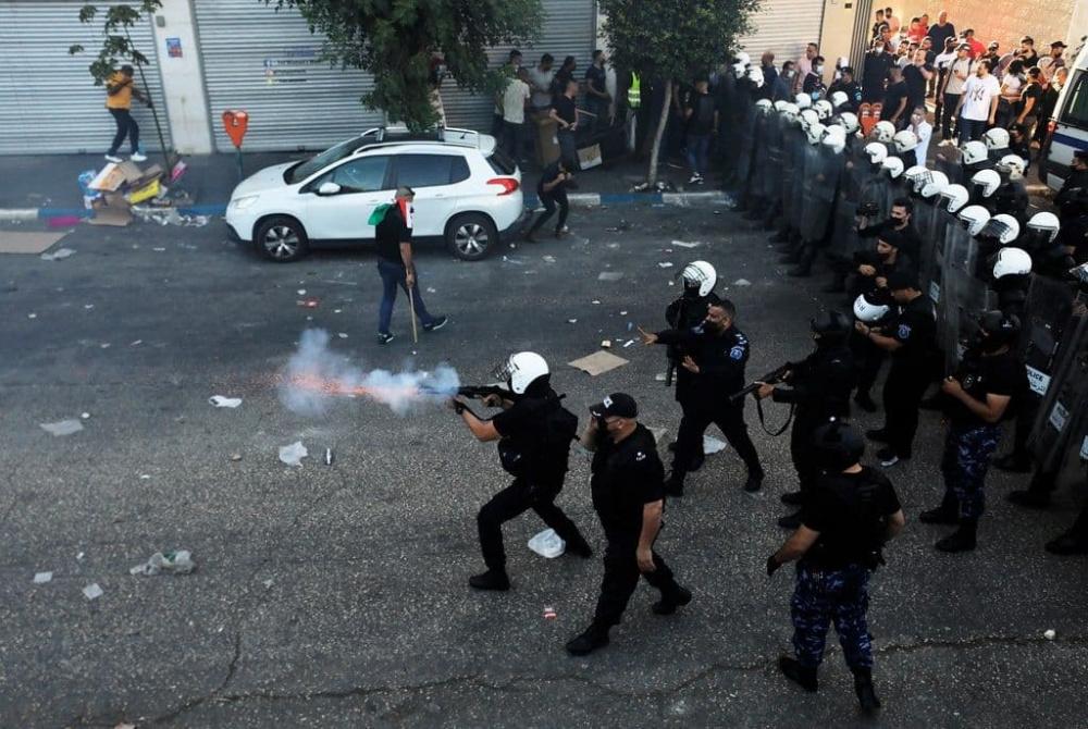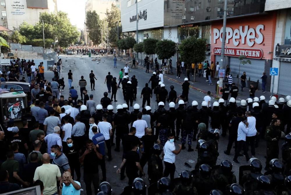 رام الله قبل قليل خلال فضّ مسيرة خرجت تنديدا بوفاة الناشط نزار بنات pic.twitter.com/0JoExPgZq6