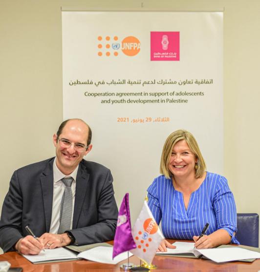 ووقع كل من السيد لؤي شبانة المدير الإقليمي للدول العربية في صندوق الأمم المتحدة للسكان، والسيد محمود الشوا المدير العام لبنك فلسطين، إطار التعاون الذي يأتي استجابةً للآثار السلبية للحرب على نمو الشباب واليافعين الذين تتراوح أعمارهم بين 13 و 17 عاماً، وذلك من النواحي التعليمية والاجتماعية والعاطفية، مما تسبب في مشاكل صحية وإصابة العديد منهم بإعاقات، إضافة إلى تمزق الأسر وتشتت الشبكات الاجتماعية، وتعريض الشباب لمخاطر جديدة وتقييد وصولهم إلى السلع والخدمات الحيوية.