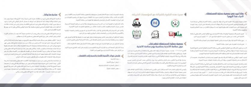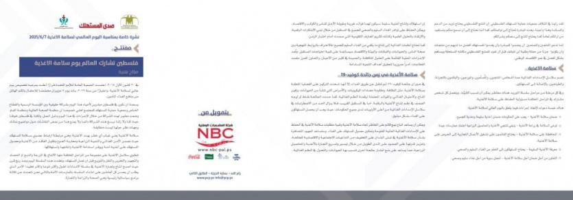 أصدرت اليوم الإثنين جمعية حماية المستهلك الفلسطيني في محافظة رام الله والبيرة عدداً جديداً من نشرتها (صدى المستهلك) بمناسبة اليوم العالمي لسلامة الأغذية والذي نظمت الجمعية فعالياته من السابع من حزيران الماضي بعد إطلاقه رسمياً برعاية الدكتورة مي كيلة وزيرة الصحة بالشراكة مع شركة المشروبات الوطنية كوكاكولا/كابي وشركة الطيف للألبان والمنتجات الغذائية– كانديا.