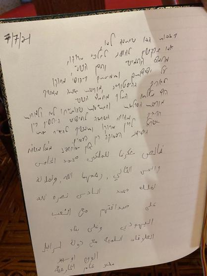 وكتب مدير عام الخارجية الإسرائيلية، ألون أوشبيز، باللغة العربية في الدفتر الذهبي للضريح: "خالص شكرنا للملكين محمد الخامس والحسن الثاني رحمهما الله وجلالة الملك محمد السادس نصره الله على صداقتهم مع الشعب اليهودي وعلى بناء العلاقات السلمية مع إسرائيل”.